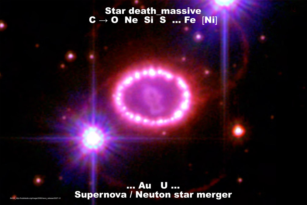 --> nämlich die Energie die direkt in einem Atom steckt -- dass durch einer Supernova kreiert wurde