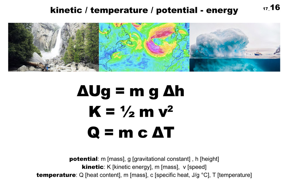 wir haben dann noch potentielle, kinetische und waerme - Energie
