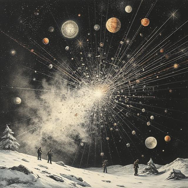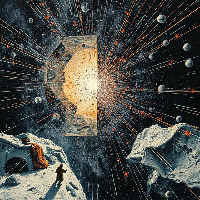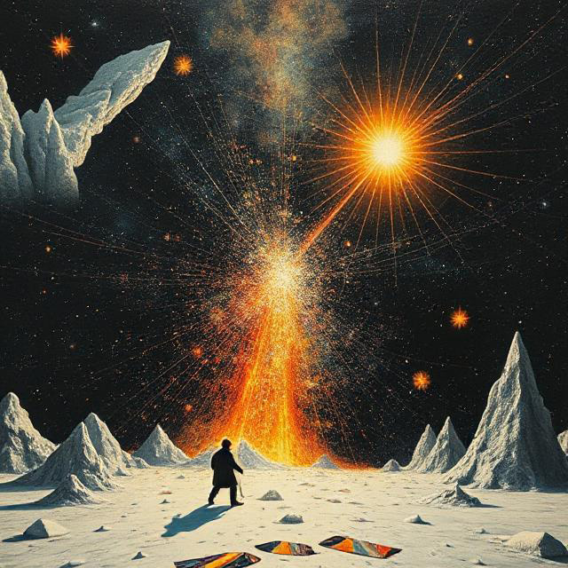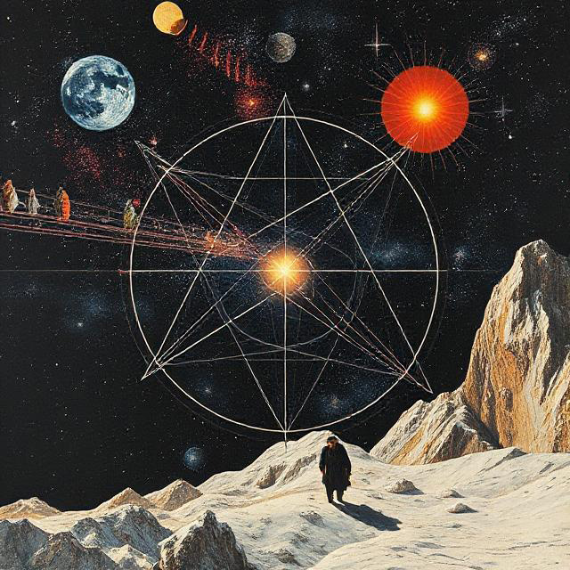 elements jodorowsky, southpole, collision, heroess, oothbrush , pytagorean theorem, collage, albrecht duerer, bright light escher, optical waves, sine, cosine, geometry, come, collage