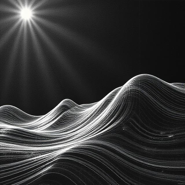 opticwaves,sine, cosine, electro, magic, Von Eyck style, old masters, optics, waves, lenses, Vermeer, oil painting, maths, perspective, techniques, no persons, flowers, drumstickflower, computer amazing radio waves, arabic, escher