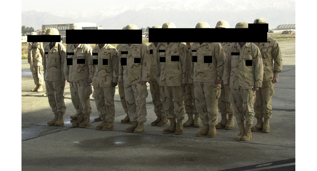 the treatment of the originial images with the whipdeout identity, soldiers are made undistinguishable (in a degree - rank). now they are made even more undistuingishable.