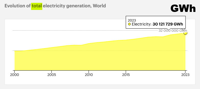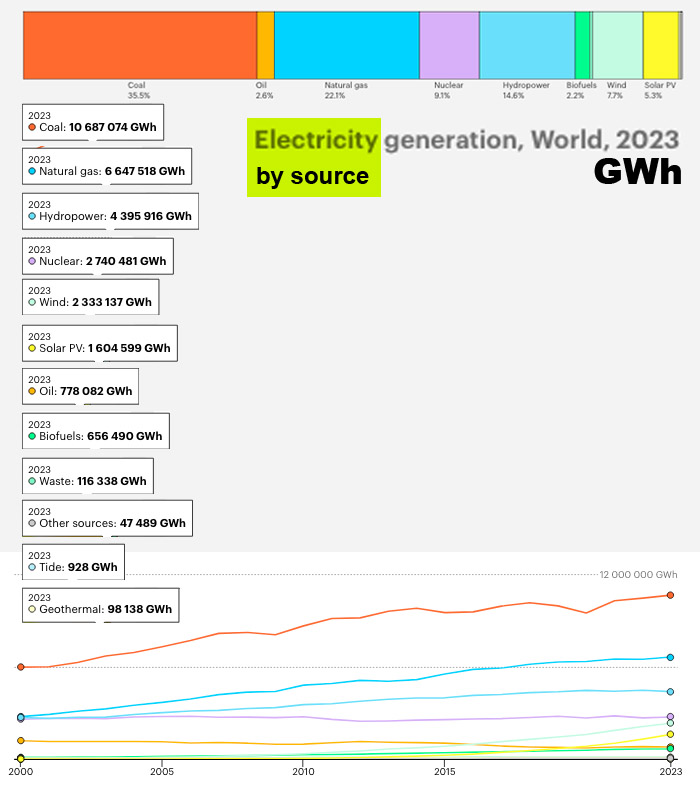 ELECTRICITY GENERATION by SOURCE, World 2023