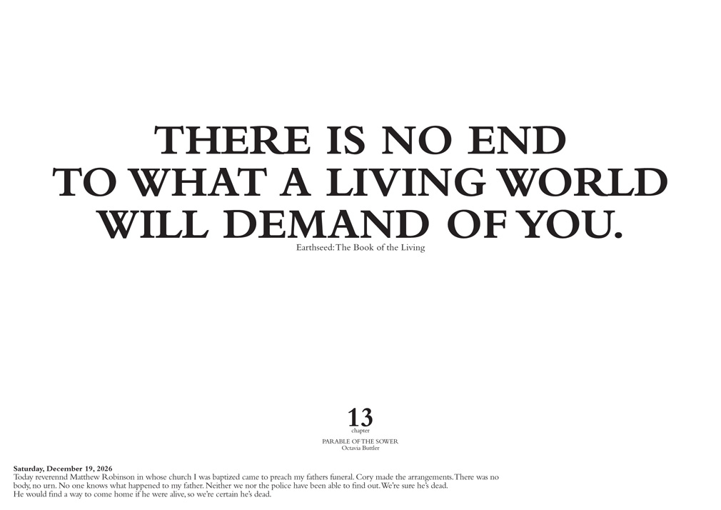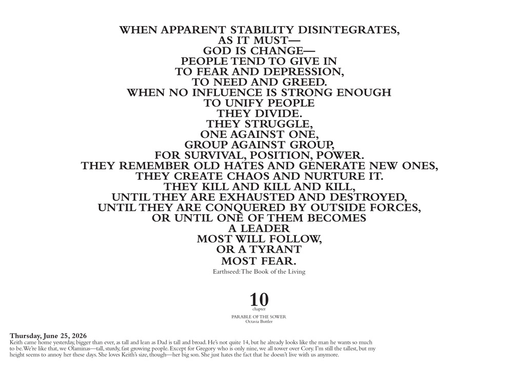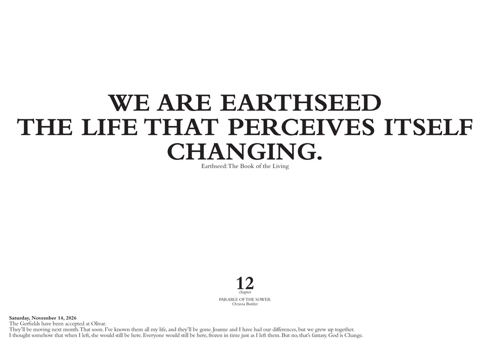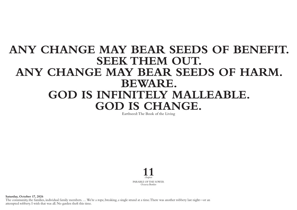 Octavia Buttler, Parable of the sower, 1993 – Chapters