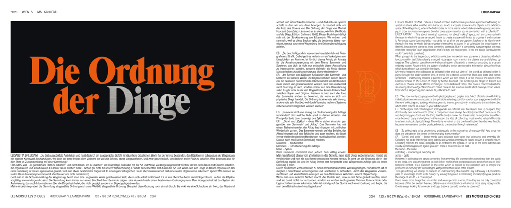 Through the title of the work Les mots et les choses, the principle of de- and recontextualisation is consistently continued.