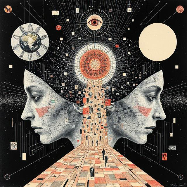vermeer, collage, pattern, fotorealistic sun, collage, levels, space, time, in style, in, collage, levels, nasa sun, modern the future, happy people, southpole,