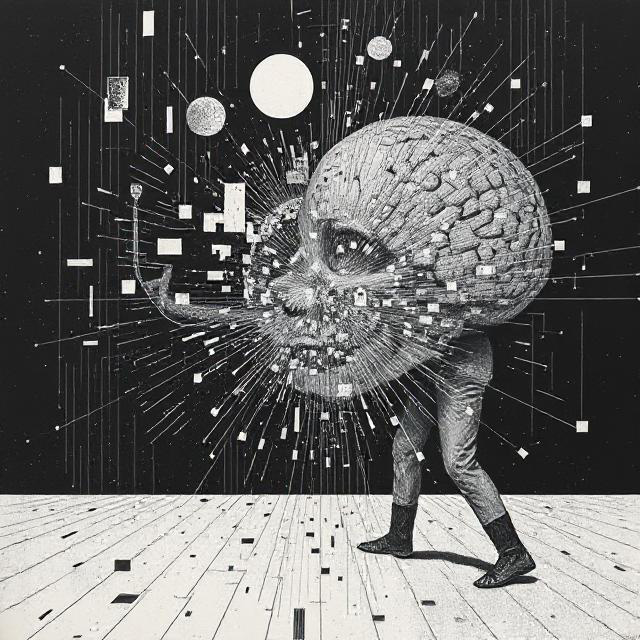 elements jodorowsky, southpole, collision, heroess, oothbrush , pytagorean theorem, collage, albrecht duerer, bright light escher, optical waves, sine, cosine, geometry, come, collage