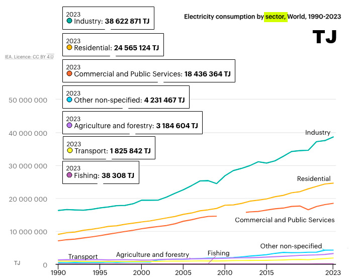 ELECTRICITY CONSUMPTION by SECTOR, World 2023