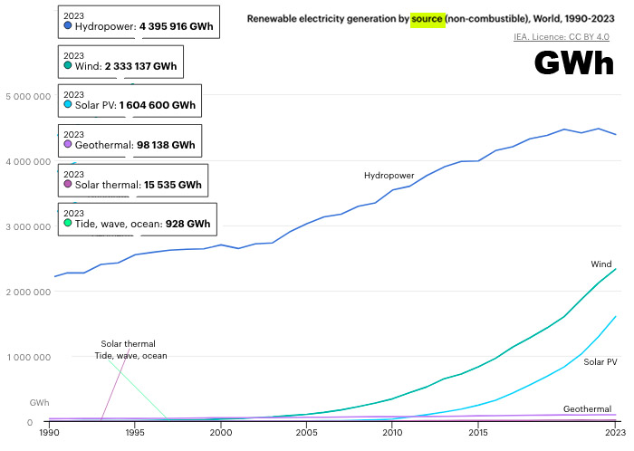 Renuable ELECTRICITY GENERATION by SOURCE, World 2023