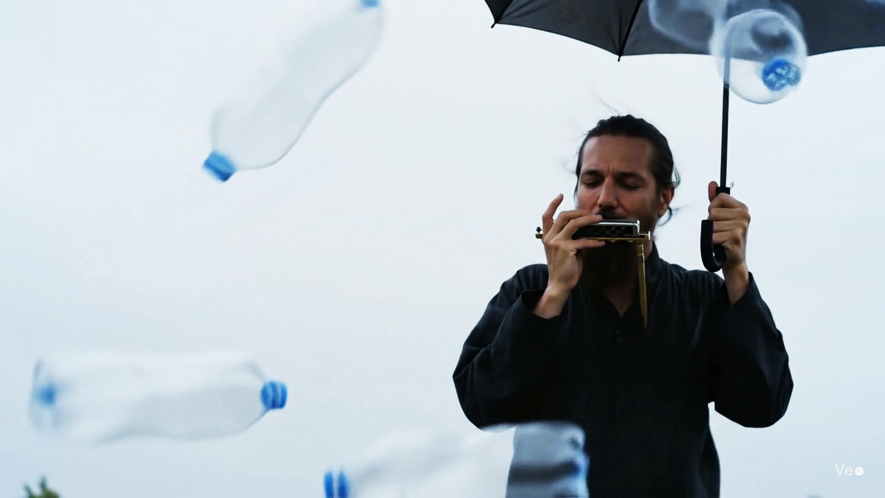 Created with Artificial Inteligence – through text-based generation, using one portrait of the musician as the visual source. Ai: Google Flow